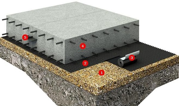 Мембрана PLANTER прекрасно ограждает плиту фундамента от напора влаги снизу, а также: