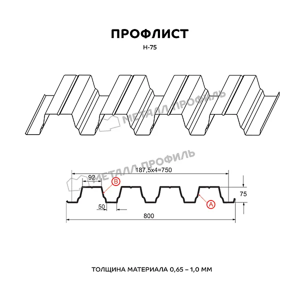 Профлист МЕТАЛЛ ПРОФИЛЬ Н-75x750-B (ПЭ-01-1015-0,7) — популярный материал в Нижнем Новгороде для оформления профилированного листа. Представляет собой стальной оцинкованный лист с покрытием. Общая толщина металла с цинковым и защитно-декоративным покрытием — 0.7 мм.После проката на специальном оборудовании металл принимает волнообразный вид. Несущая способность такого листа на порядок выше плоского.