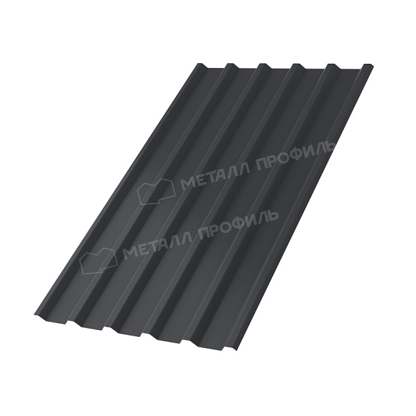 Профлист МЕТАЛЛ ПРОФИЛЬ МП-35х1035-B (ПЭ_Д-01-7024-0,45) — популярный материал для обустройства кровли. Изначально он представляет собой стальной оцинкованный лист с покрытием. Толщина металла с оцинковкой и полимерным покрытием составляет 0.45 мм. После проката на специальном оборудовании металл приобретает рисунок из повторяющихся волн. Такая конфигурация придает профилю жёсткость.