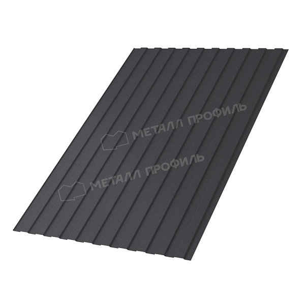 Профлист МЕТАЛЛ ПРОФИЛЬ С-8х1150-B (PureTech_Mat-20-7024-0,5) — популярный материал для оформления забора. Представляет собой лист оцинкованной стали с покрытием. Общая толщина стальной основы с цинковым и декоративно-защитным покрытием — 0.5 мм. Проходя процедуру холодного проката, сталь приобретает рисунок из повторяющихся волн. Несущая способность профилированного листа на порядок выше плоского.